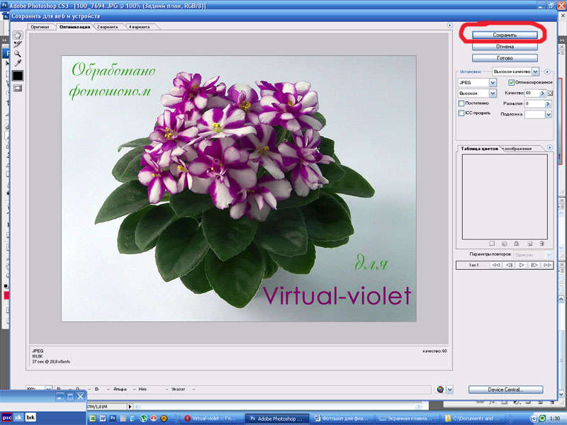 Я сделала то же самое, но немного по-другому, сохранила результат. И обработала изображение в другой программе.