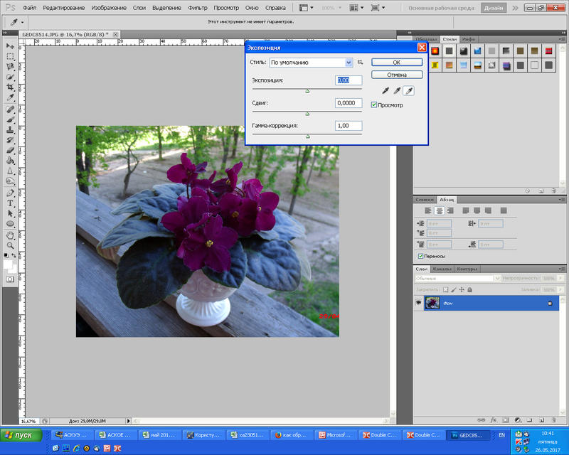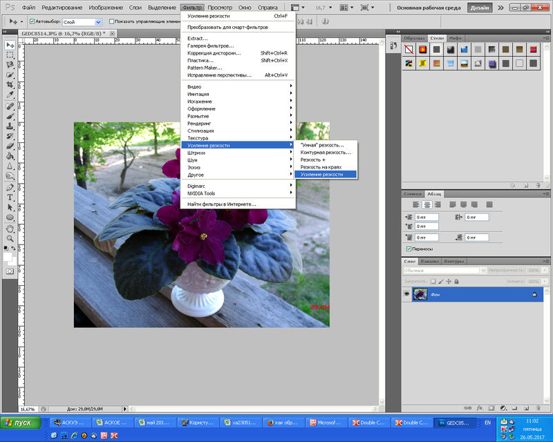 Покажу как я свои фото обрабатываю. У меня обычный старенький фотошоп, русифицированная версия.